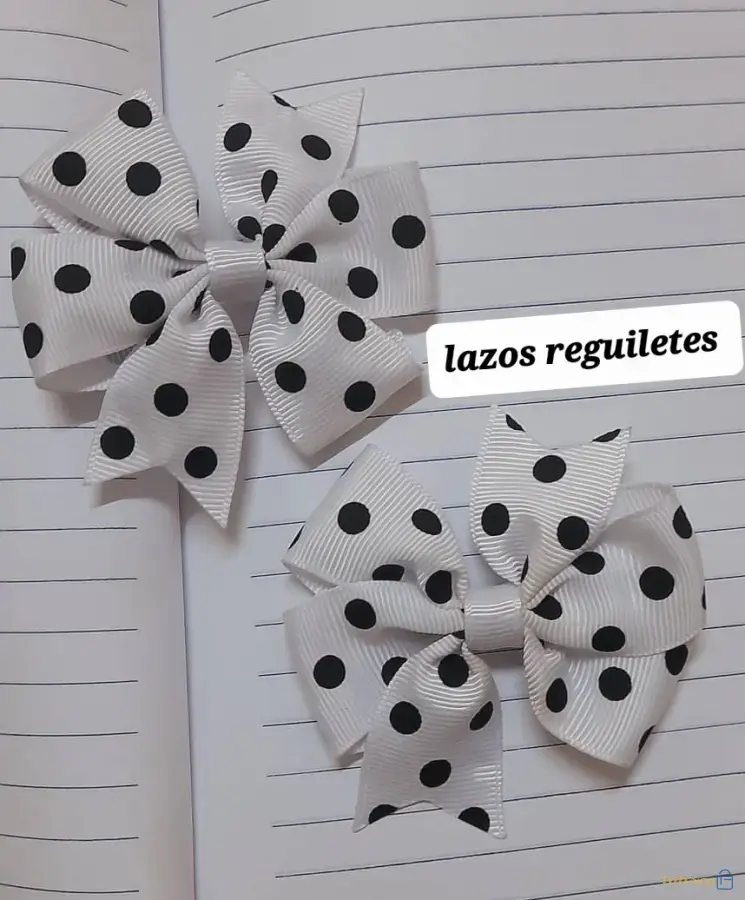 Par de lazos tipo reguilete elaborados con cintas de calidad, ideales para niñas a partir de 1 año. Se pueden realizar en cintas estampadas o colores sólidos según tu preferencia, perfectos para el uso diario, el cole o sesiones de fotos.